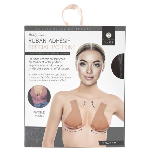 Le ruban adhésif spécial peau est une solution pratique pour porter des tenues avec des découpes spécifiques sans compromettre le maintien du soutien-gorge.