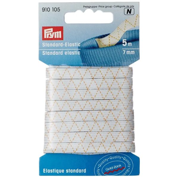 Ce ruban élastique polyvalent de Prym est particulièrement approprié à être passé dans les ourlets de pantalons, de pyjamas ou de vestes. Avec ce ruban élastique solide au motif en zigzag les fils élastiques sont disposés uniformément les uns à côté des autres et permettent une force de tension uniformément répartie. Le produit satisfait aux exigences les plus élevées en termes de tolérance dermique et est certifié selon la norme OEKO-TEX® Standard 100. Les rubans sont disponibles en différentes largeurs et longueurs. Le ruban « élastique standard » est lavable jusqu’à 95 degrés et approprié au sèche-linge.