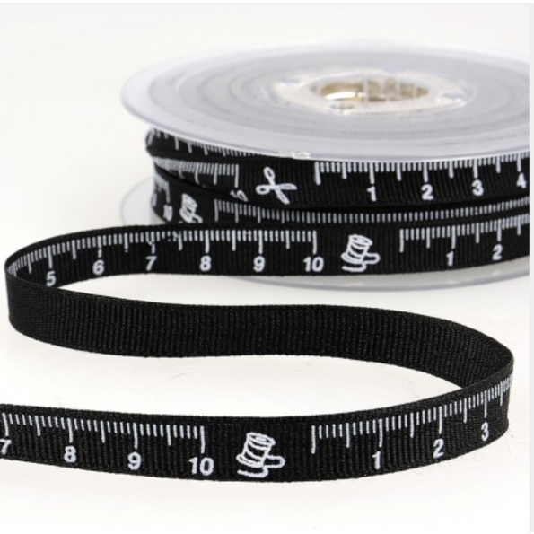 Ruban imprimé 10 mm Noir Mètre couture x1m