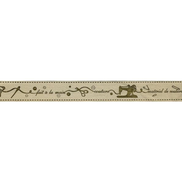 Ruban imprimé 15 mm Naturel Couture Marron x1m