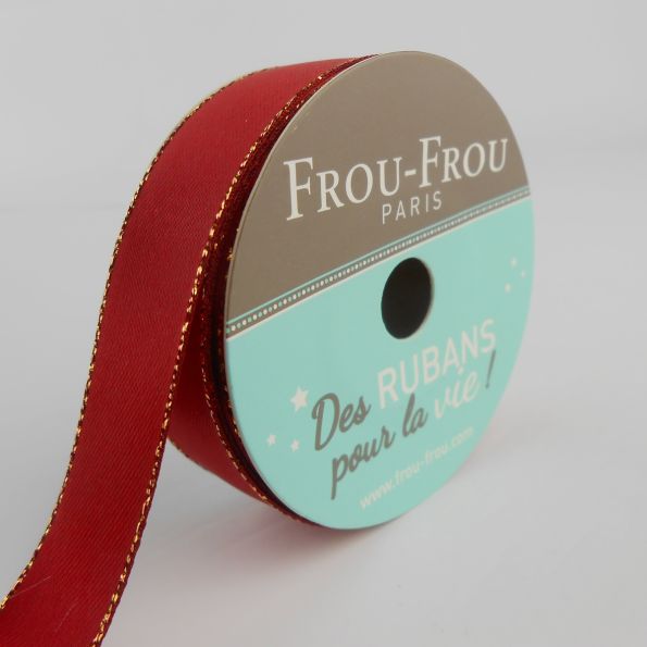 Ruban Satin Bord brillant Frou-Frou Rubis eclatant - 16 mm x 6 mètres