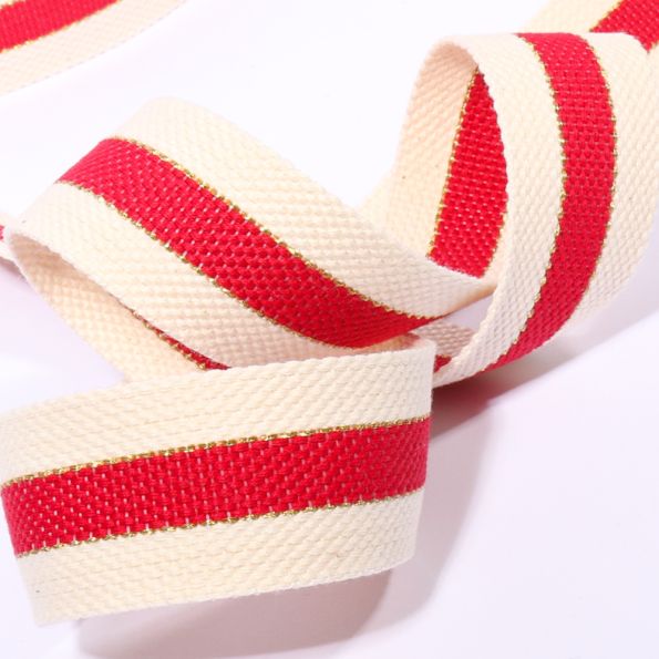Sangle Coton 30 mm Bicolore Lurex Rouge x1m