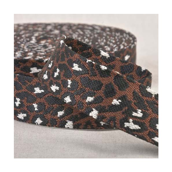 Sangle Polyester aspect Coton 38 mm Léopard Marron café