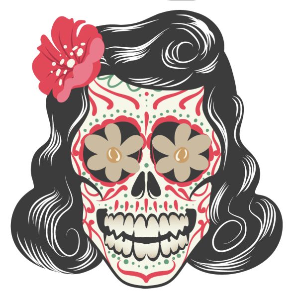 Sticker textile thermo-adhésif 7x7 cm - Tête mexicaine - femme