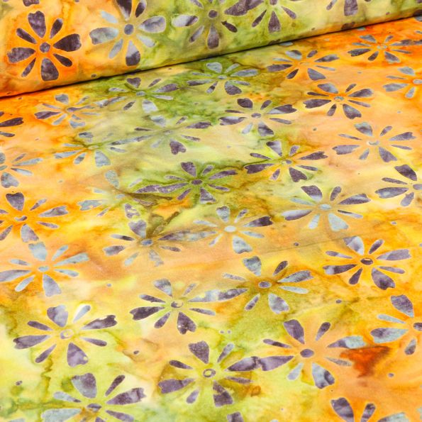 Véritable tissu Batik indonésien. Ce tissu batik de grande qualité est un tissu réversible dont les couleurs vives ont été obtenues par trempage à la main dans des bains de teinture. Ses motifs sont originaux et pétillants.