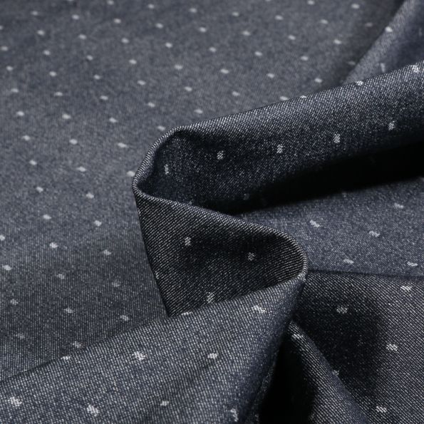 Tissu Bengaline Dots sur fond Bleu marine - Par 10 cm