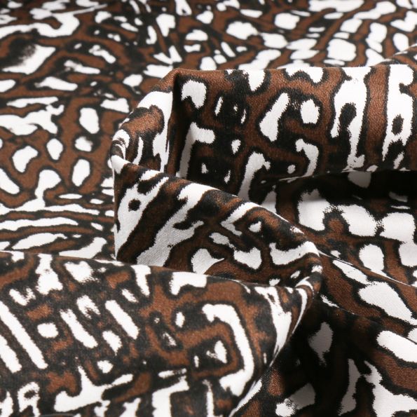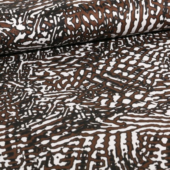 Tissu Bengaline Samantha blanc sur fond Marron - Par 10 cm