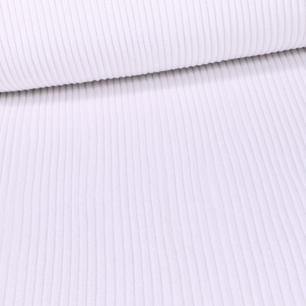 Tissu Bord côte Côtelé uni épais 3/3 Blanc - Par 10 cm