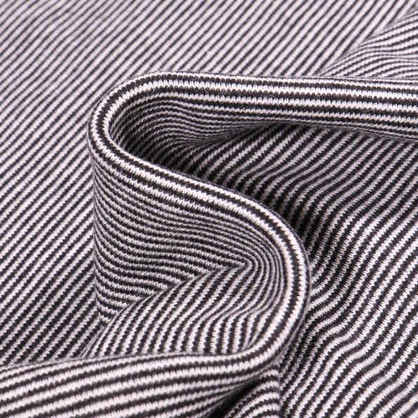 Tissu Bord côte Fines rayures noires sur fond Blanc - Par 10 cm