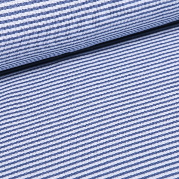 Tissu Bord côte Rayé bleu sur fond Blanc - Par 10 cm