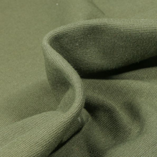 Tissu Bord côte uni Bio Vert kaki - Par 10 cm