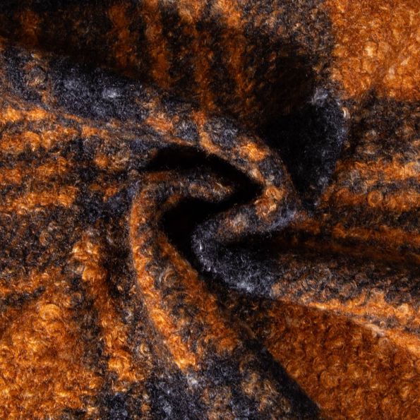 Tissu Bouclette Polyester Carreaux sur fond Rouille - Par 10 cm