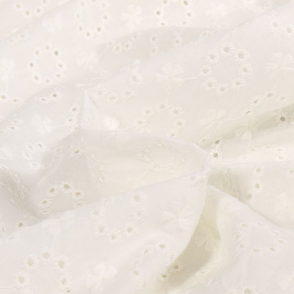 Tissu Broderie anglaise Cercle Elisa fleuris Blanc - Par 10 cm