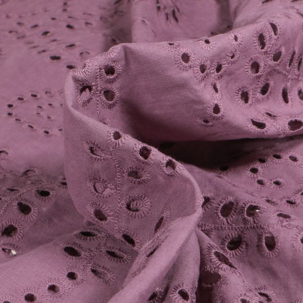 Tissu Broderie anglaise Motifs ajourés sur fond Violet - Par 10 cm