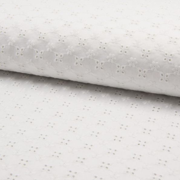 Tissu Broderie anglaise satiné n°350 sur fond Blanc - Par 10 cm