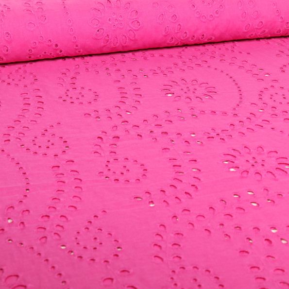 Tissu Broderie anglaise Suzzy sur fond Rose fuchsia - Par 10 cm