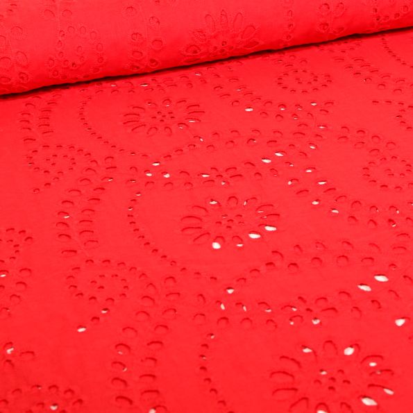 Tissu Broderie anglaise Suzzy sur fond Rouge - Par 10 cm