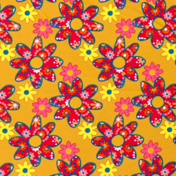 Tissu Burlington Grandes fleurs sur fond Orange - Par 10 cm