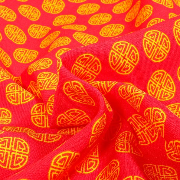 Tissu Burlington Symbole rond asiatique sur fond Rouge - Par 10 cm