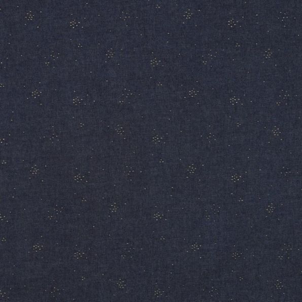 Tissu Chambray Confettis argentés sur fond Bleu foncé - Par 10 cm