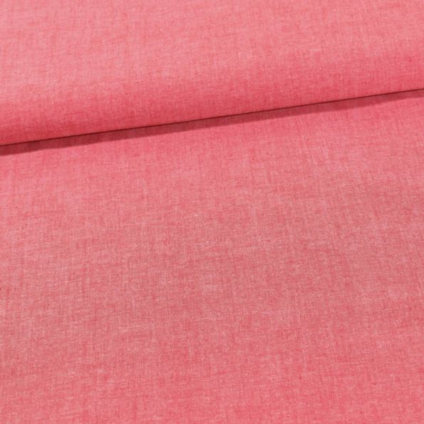 Tissu Chambray Coton uni Rouge - Par 10 cm