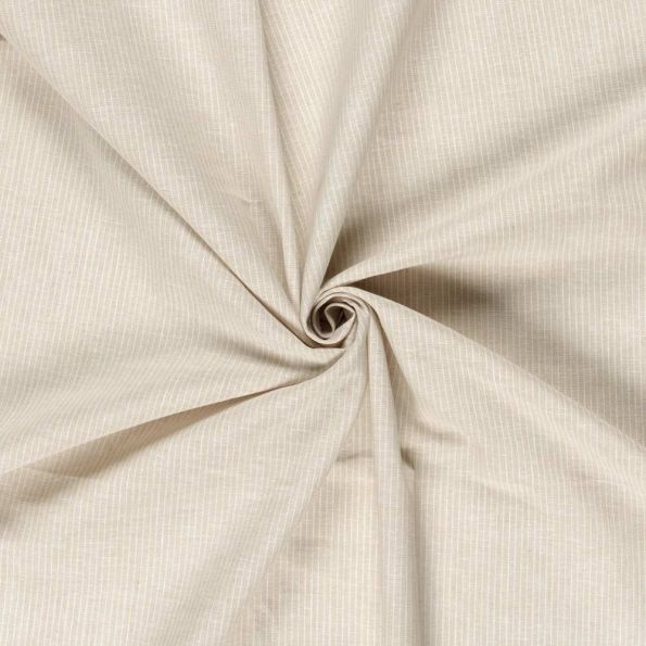 Tissu Chambray Lin coton Small stripes sur fond Beige - Par 10 cm