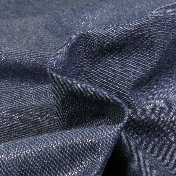 Tissu Chambray pailleté uni Bleu foncé - Par 10 cm