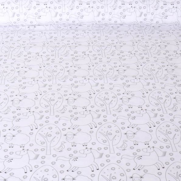Tissu Coton à colorier Animaux et fleurs sur fond Blanc - Par 10 cm