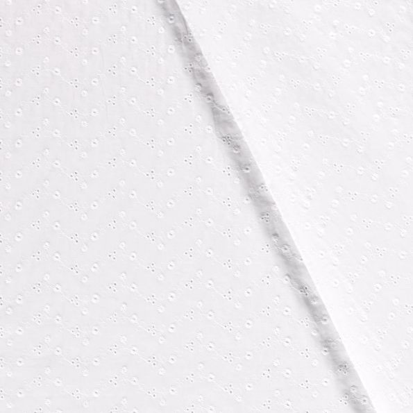 Tissu Coton brodé ajouré fleurs uni Blanc - Par 10 cm