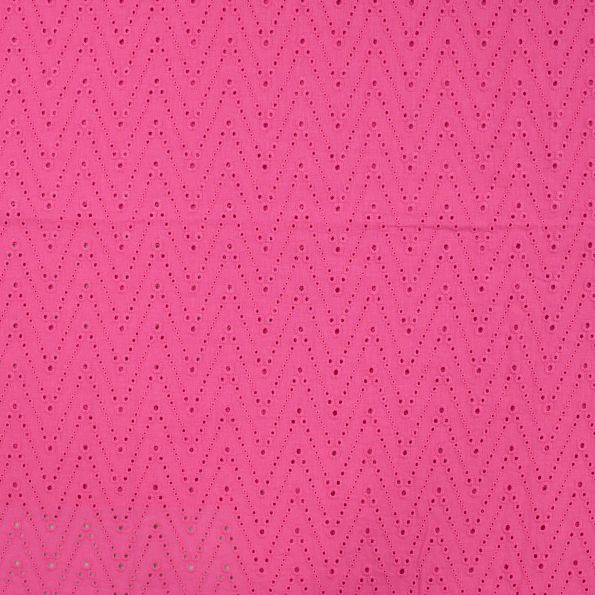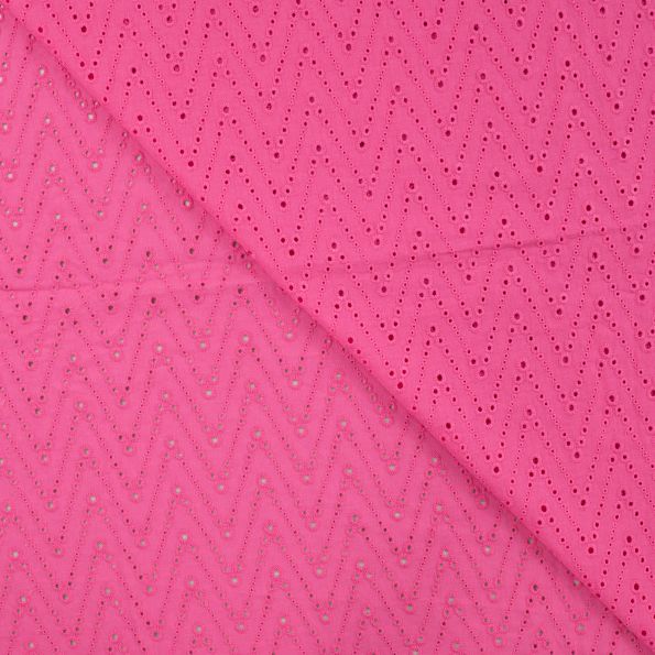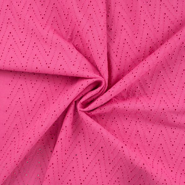 Tissu Coton brodé ajouré Leisa uni Rose fuchsia - Par 10 cm