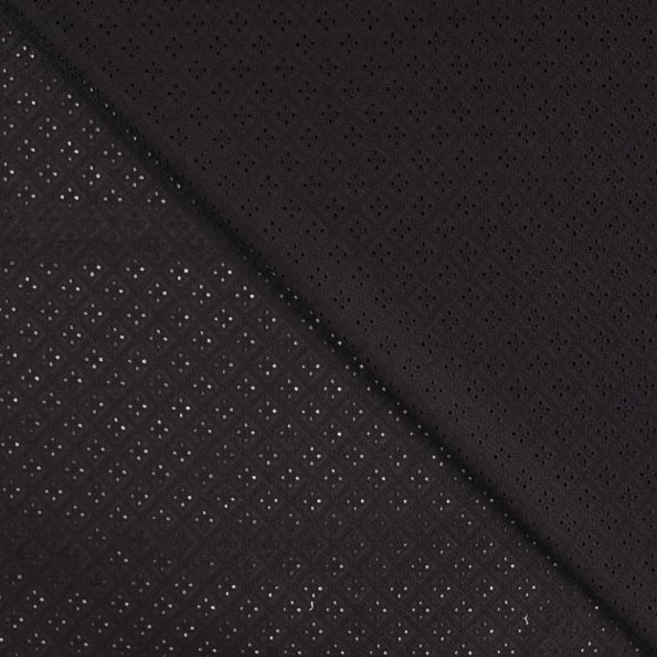 Tissu Coton brodé ajouré Lois uni Noir - Par 10 cm