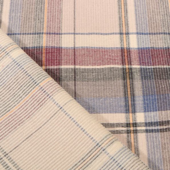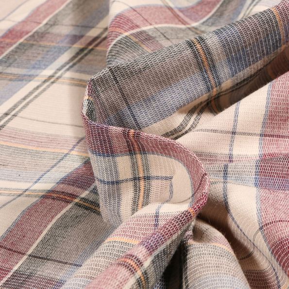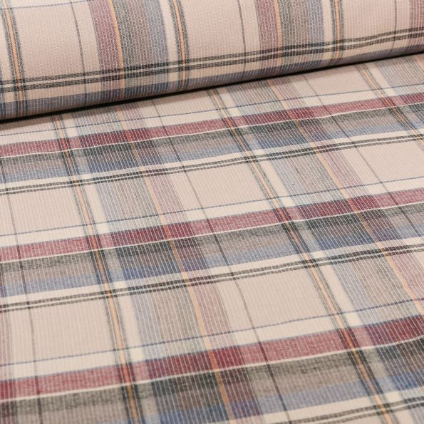 Tissu Coton Chemise Carreaux bordeaux sur fond Beige - Par 10 cm