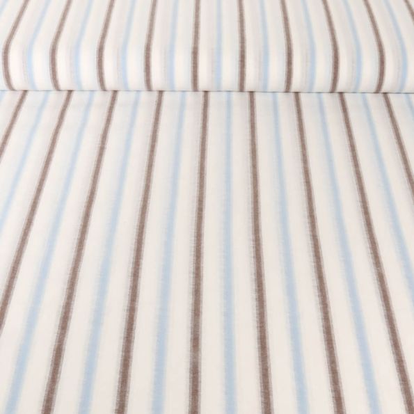 Tissu Coton Dévoré Rayé bleu et marron sur fond Blanc - Par 10 cm