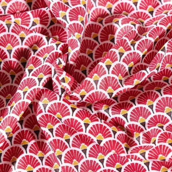 Tissu Coton enduit Arty Éventails rouge foncé sur fond Blanc - Par 10 cm