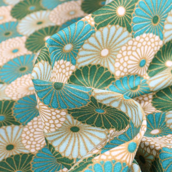 Tissu Coton enduit Arty Hiro sur fond Bleu turquoise - Par 10 cm