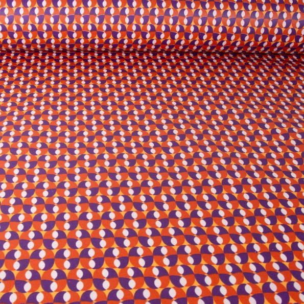 Tissu Coton enduit Bohazia Violet sur fond Ocre - Par 10 cm