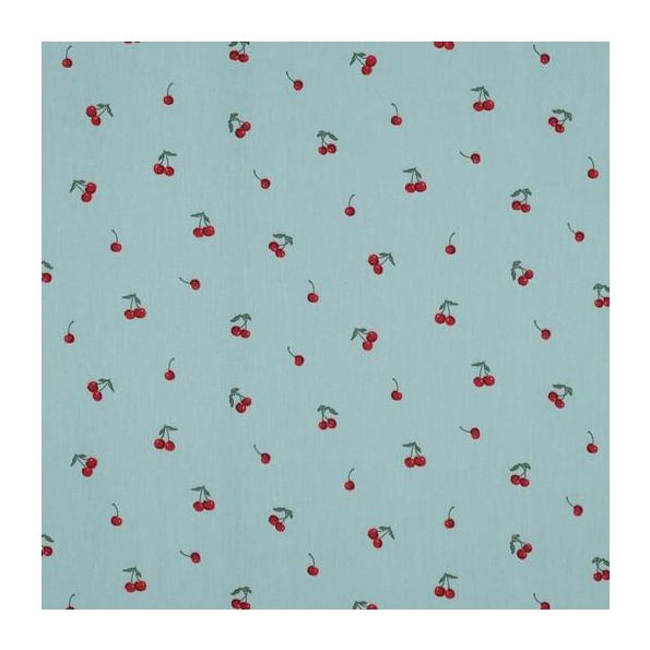 Tissu Coton enduit Cerises sur fond Bleu - Par 10 cm