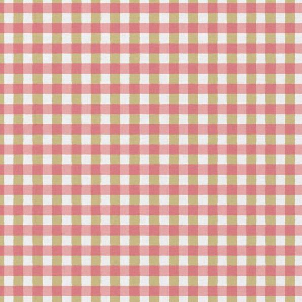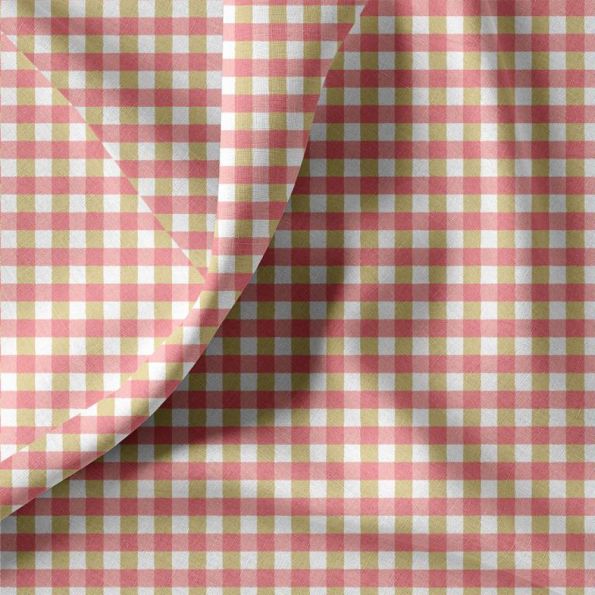 Tissu Coton enduit léger Vichy Rose et vert sur fond Blanc - Par 10 cm