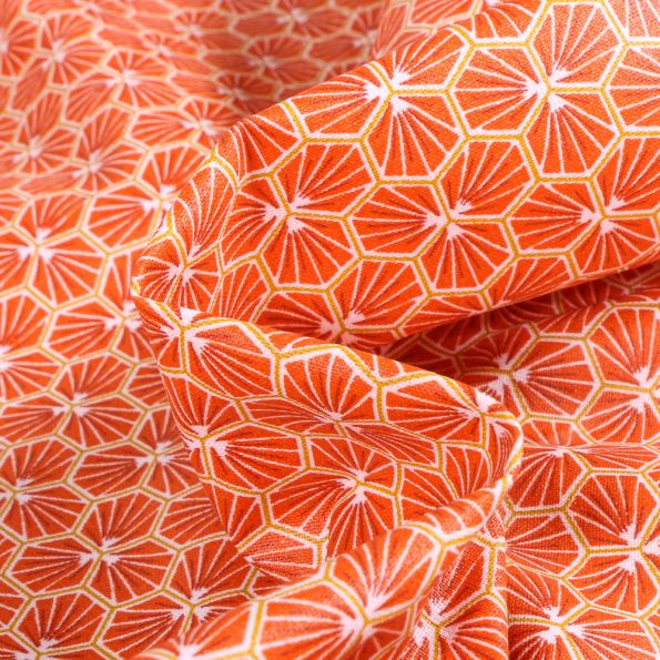 Tissu Coton enduit Riad sur fond Orange - Par 10 cm