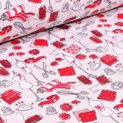 Tissu Coton imprimé Arty Accessoires de couture Corail turquoise sur fond Ecru - Par 10 cm