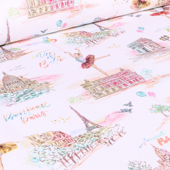 Tissu Coton imprimé Arty Bonjour Paris sur fond Blanc - Par 10 cm