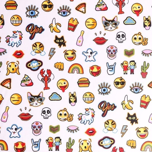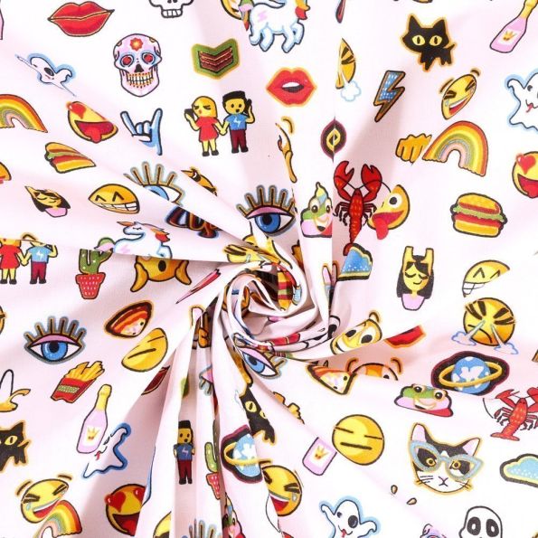Tissu Coton Imprimé Arty Emojis sur fond Blanc - Par 10 cm