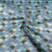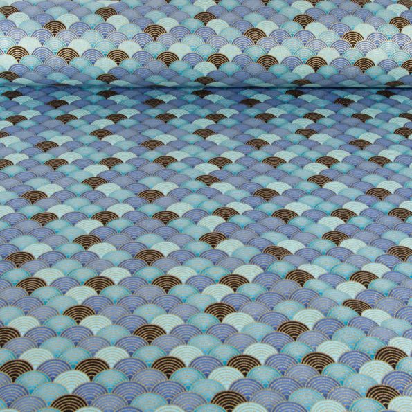 Tissu Coton imprimé Arty Eventails dorés et bleus sur fond Bleu - Par 10 cm