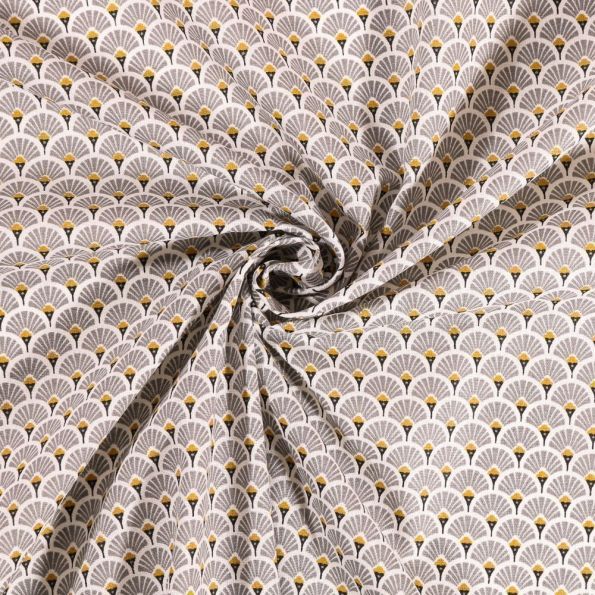 Tissu Coton Imprimé Arty Eventails Gris - Par 10 cm