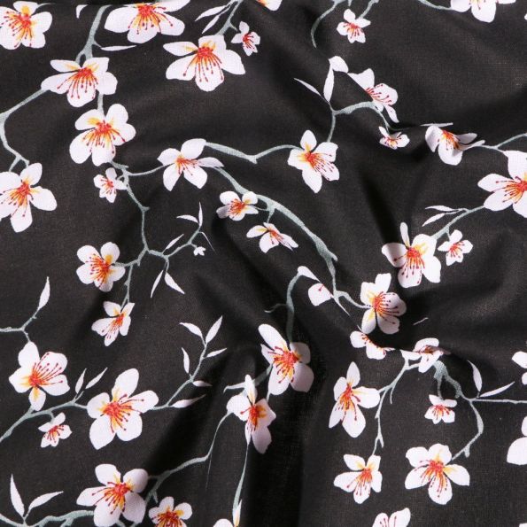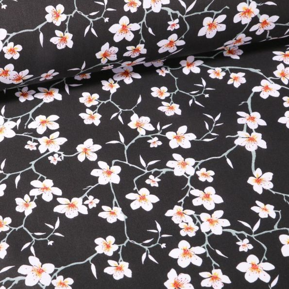 Tissu Coton imprimé Arty Fleur d'amandier sur fond Noir - Par 10 cm