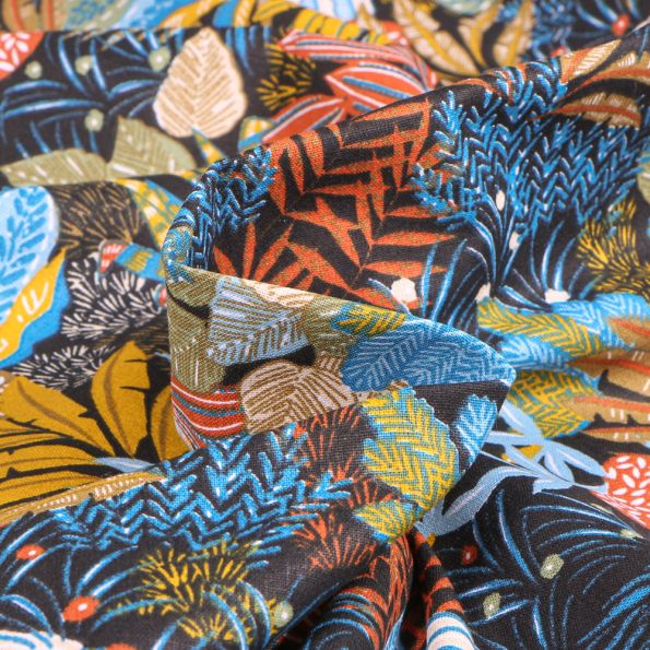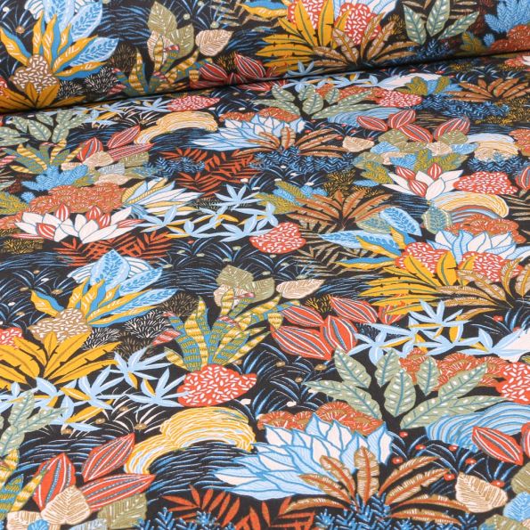 Tissu Coton imprimé Arty Hesperides sur fond Noir - Par 10 cm