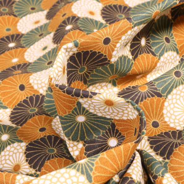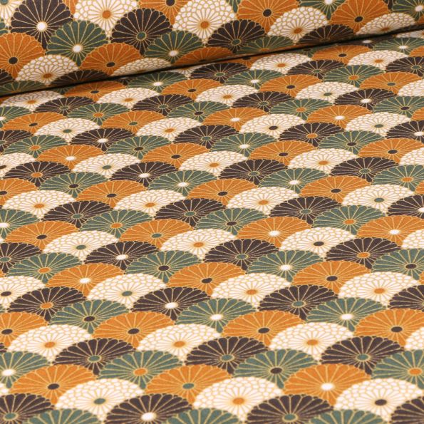 Tissu Coton imprimé Arty Hiro sur fond Bronze - Par 10 cm