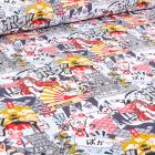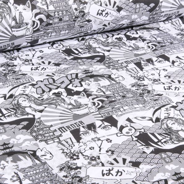 Tissu Coton imprimé Arty Kawai sur fond Noir - Par 10 cm