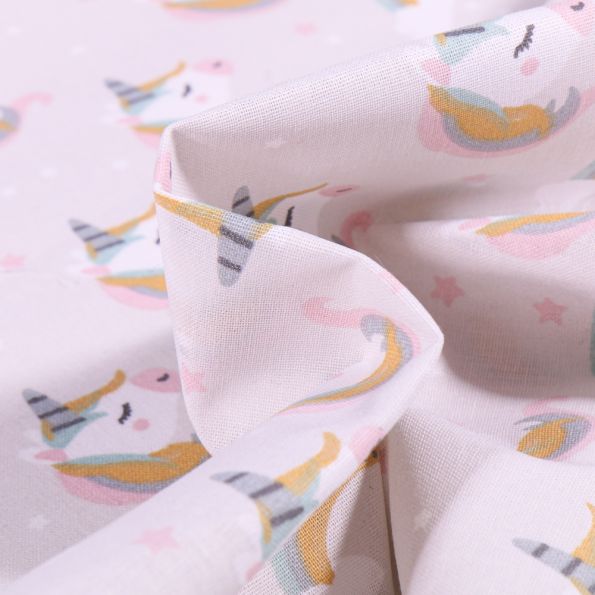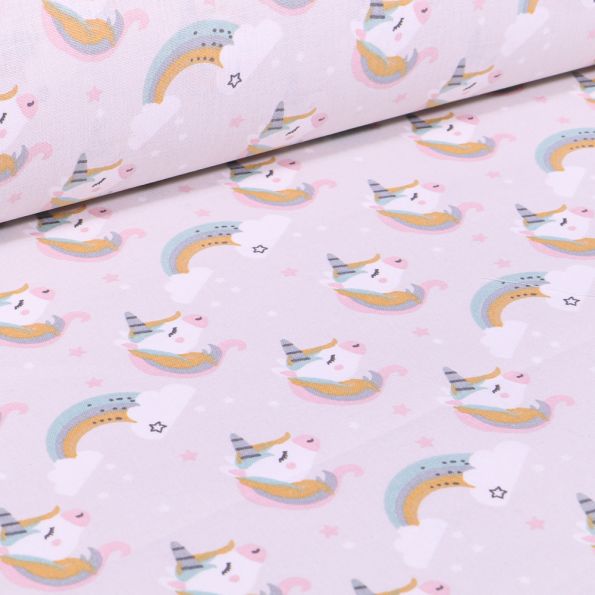 Tissu Coton imprimé Arty Licornes et arc en ciel pastel sur fond Blanc - Par 10 cm