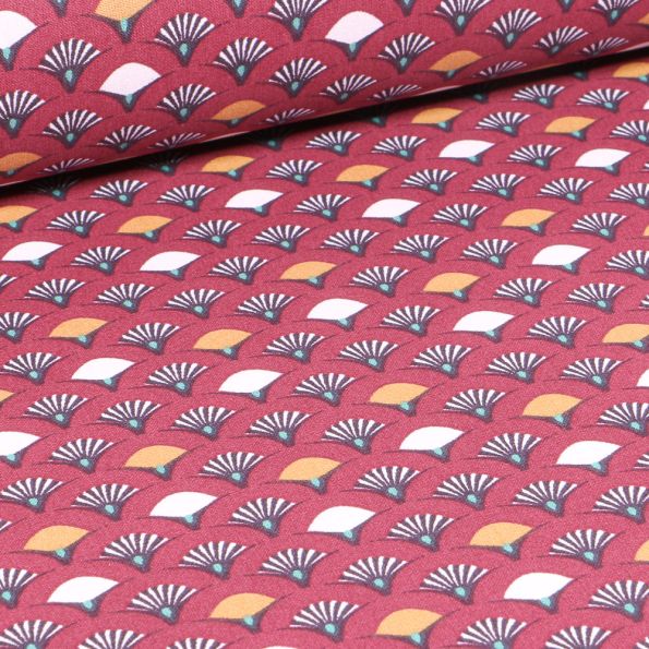 Tissu Coton imprimé Arty Muji sur fond Bordeaux - Par 10 cm